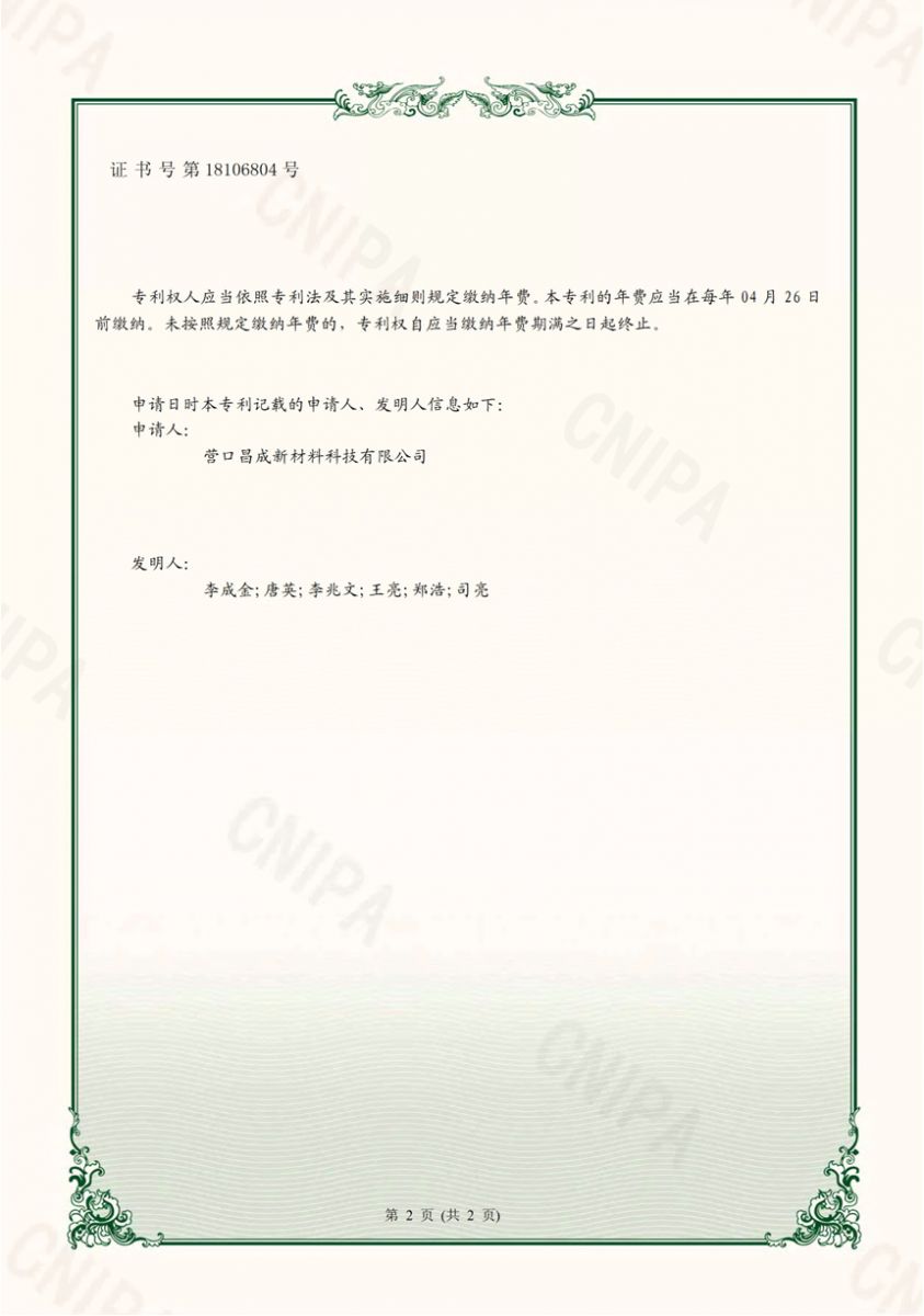 Copyright(C)2021,Yingkou Changcheng New Material Technology Co., Ltd. All Rights Reserved.